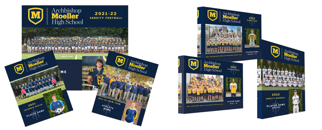 Also, check out the popular, custom made Moeller MVP Memory Mate which contains the team photo as well as your athlete. It is available in either an 8″ x 10″ size or an 11″ x 14″ size. Fall 2024 Moeller Mates will now be shipped directly and shipping and handling charges are included in the Moeller Mate cost while individual prints which are fulfilled by an outside photo lab will be separately shipped directly to you as well. Also available is a custom made 16″ x 20″ Gallery wrapped canvas Moeller MVP Memory Mate. This items will be custom made and must be delivered to the Moeller Spirit shop when ready. You will be notified when it is ready for pickup.